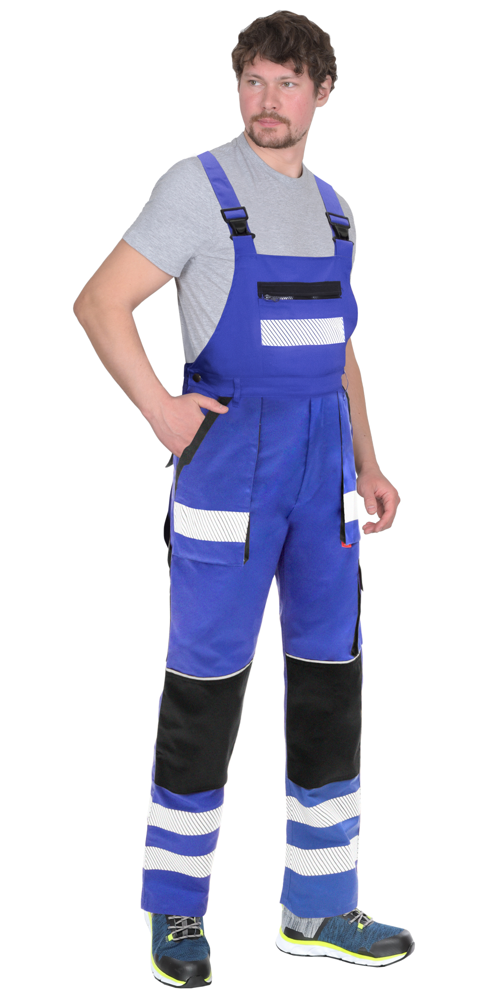 В полукомбинезоне предусмотрены термотрансферная лента с рефлектором 50 мм и светоотражающий кант.