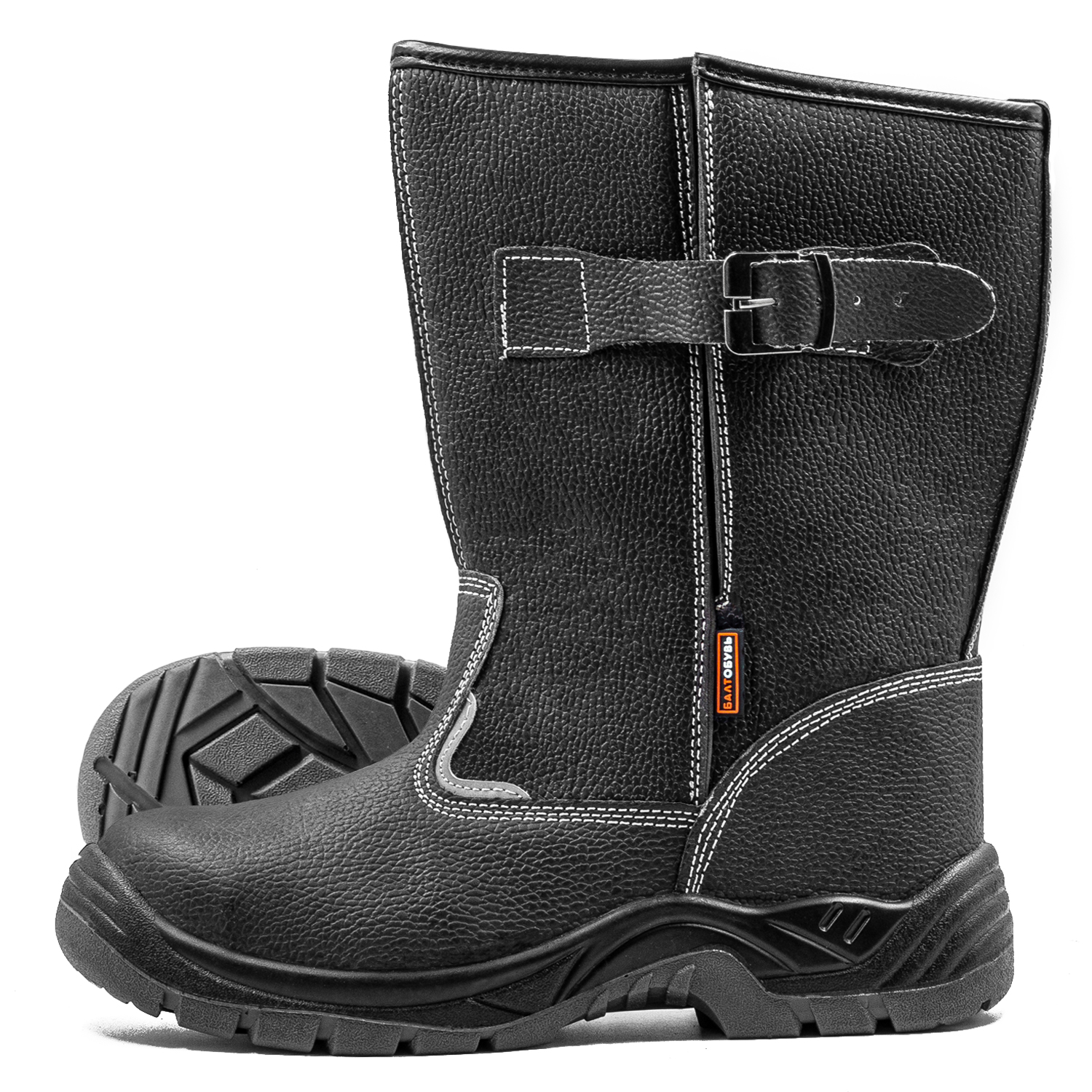 Рабочие сапоги на двухслойной ПУ/ПУ (полиуретановой) подошве изготовлены из натуральной юфтевой кожи устойчивой к воздействию агрессивных внешних факторов. Подошва изготовлена литьевым методом, устойчива к воздействию кислотно-щелочных веществ (до 20%), масло-бензольных соединений и нефтепродуктов. Рабочая температура эксплуатации ботинок от -35°С до +85°С. Амортизатор в пяточной части сапога обеспечивает дополнительный комфорт для ног. Анатомическая стелька из ЭВА обеспечивает комфорт носки и снижает нагрузку на суставы ног
