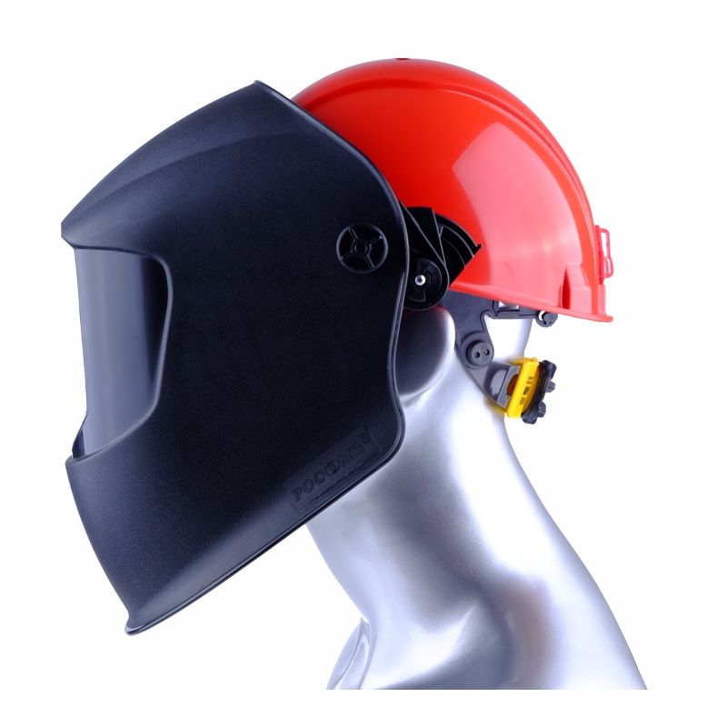 крепление на каске с помощью специальных универсальных адаптеров (в комплекте), фиксируется в двух максимально выгодных положениях: рабочем (внизу) и не рабочем (вверху);