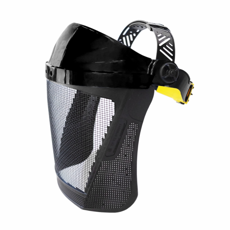 Экран из стальной крупноячеистой сетки (размер ячейки 2×2 мм окрашенный или с покрытием)  обеспечивает защиту от высокоскоростных твердых частиц с низкоэнергетическим ударом (45 м/с). Козырек уменьшенного размера, изготовленный из термостойкого и ударопрочного материала Termotrek. Наголовное крепление RAPID с мягким и гигиеничным обтюратором.