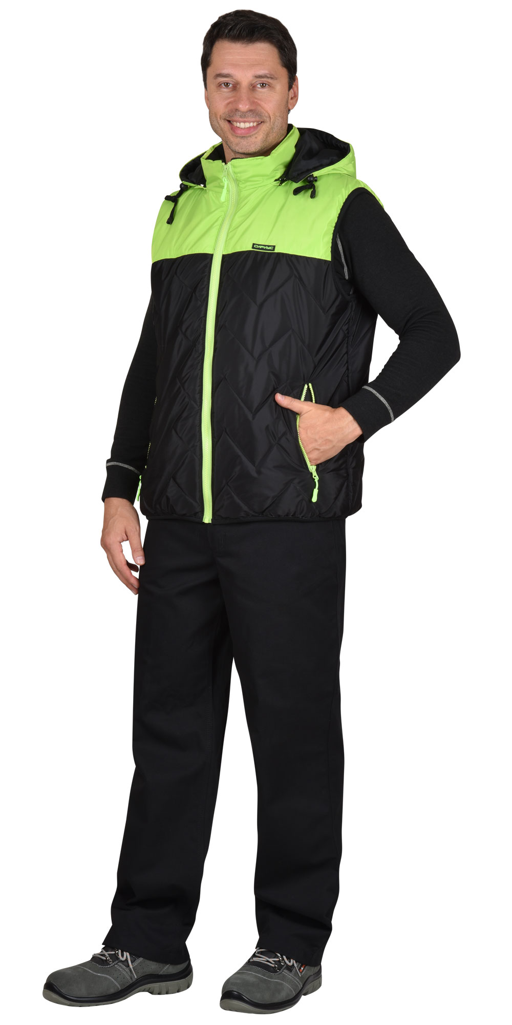 Жилет "САМСОН" черный с салатовым (ЧЗ) ( 96-100)
