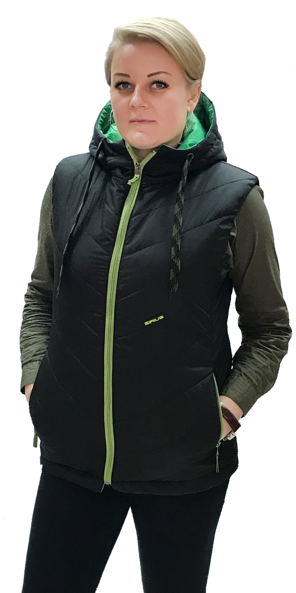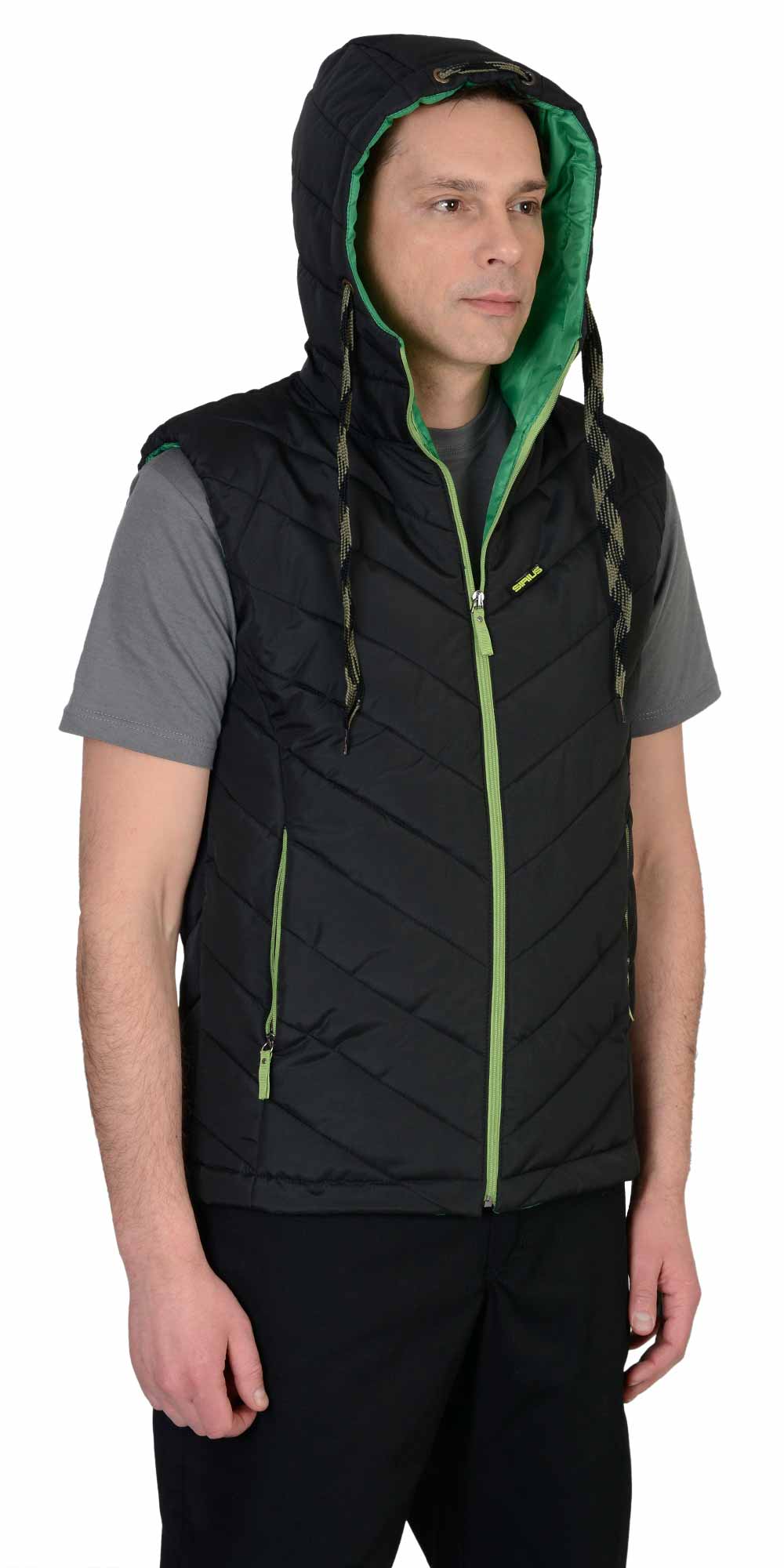 Жилет "СТИЛЬ" утепленный : черный ( на зеленой подкладке)  (ЧЗ)