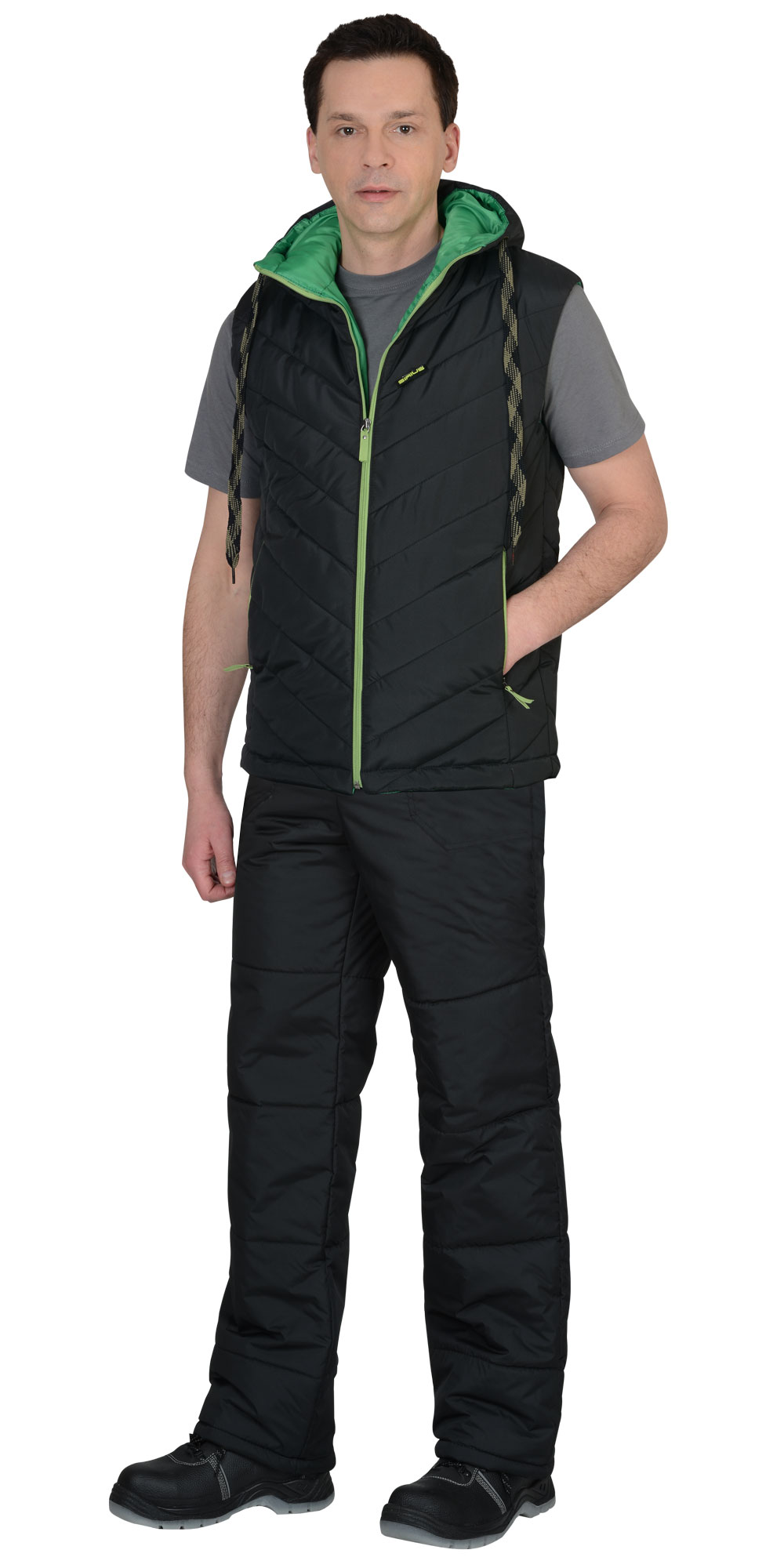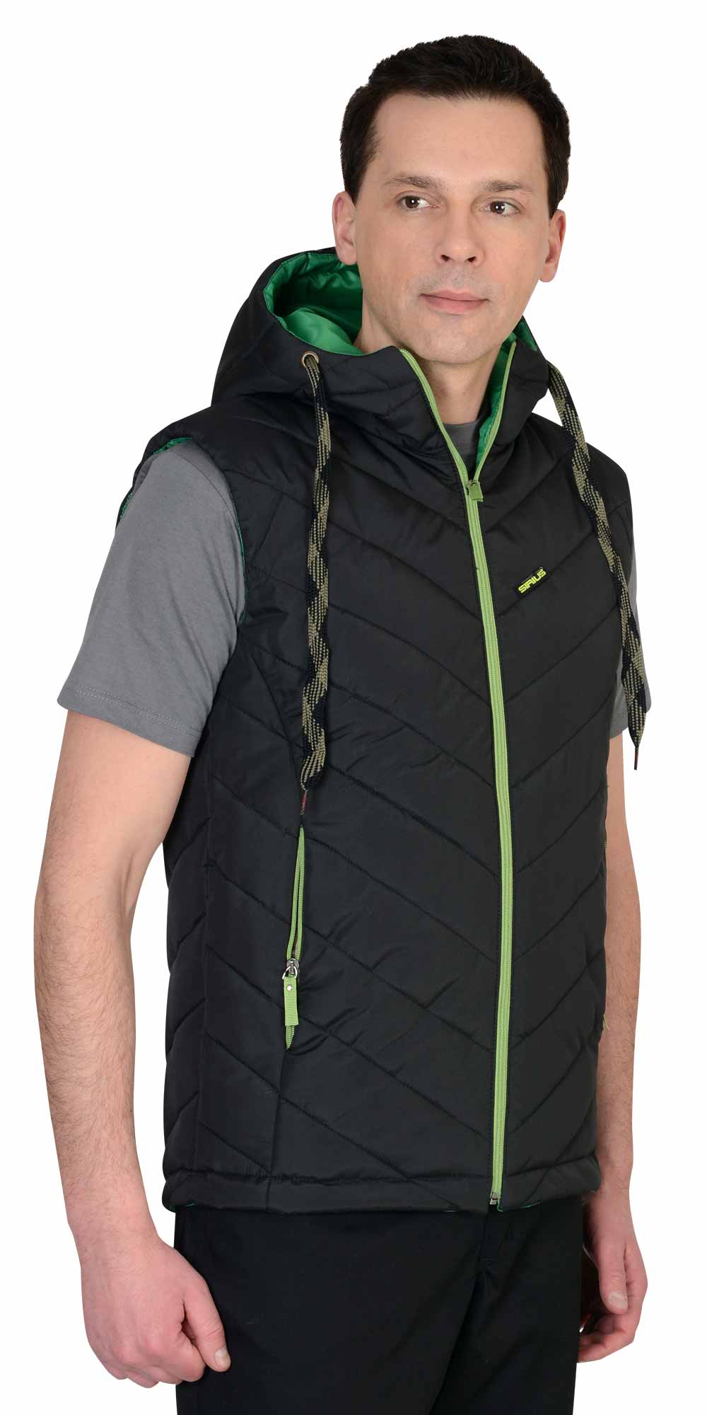 Жилет "СТИЛЬ" утепленный : черный ( на зеленой подкладке) (ЧЗ)