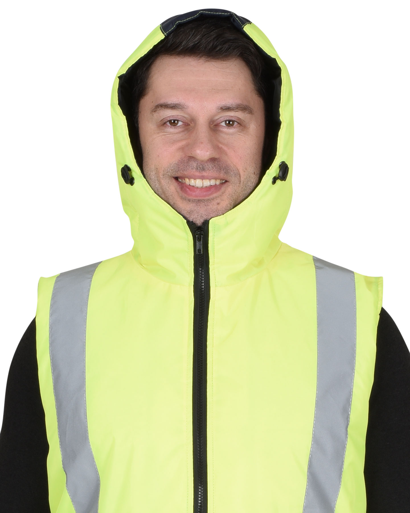 Жилет "Терминал" с капюшоном темно-синий с лимонным (ЧЗ)